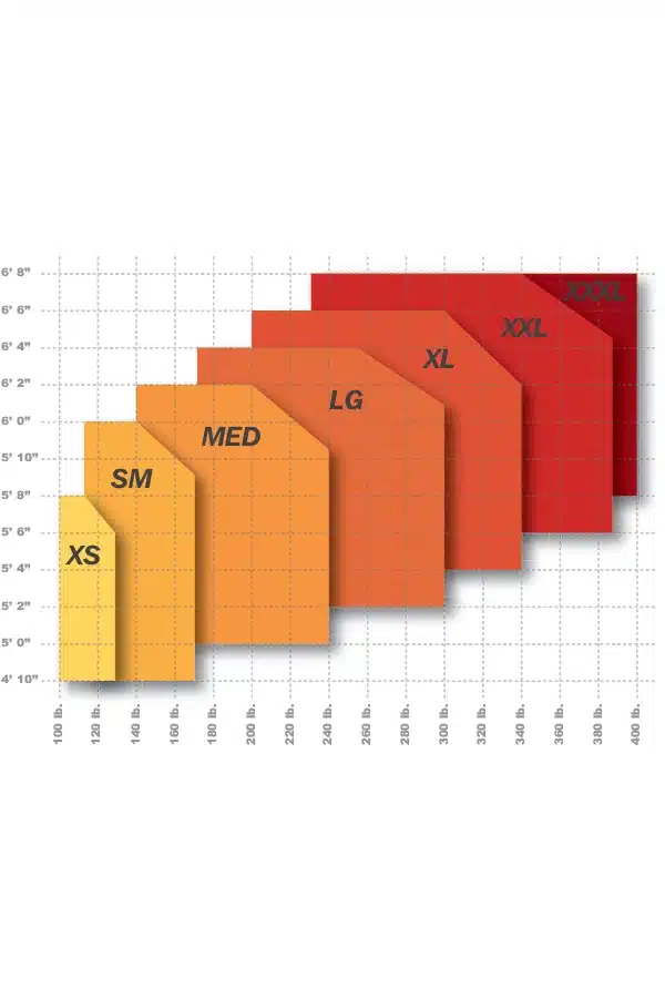 Full Body Harness, Pass-thru buckle leg straps, sewn on 1 3/4″ wide belt, single back dorsal d-ring, 6 point adjustability