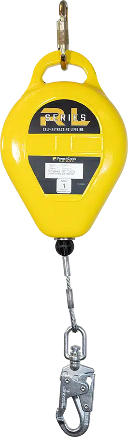 30 FT Self Retracting Lifeline, Stainless Steel Wire Rope, Cast Aluminum Housing with carabiner, and load indicating swivel snap hook